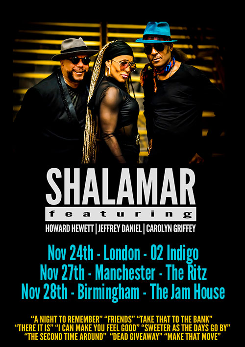 Welcome to the official website for Shalamar featuring Howard Hewett, Jeffrey Daniel and Carolyn Griffey. Shalamar sold over 25 million records until the classic line up split in the mid eighties. They are acknowledged as one of the best funk and soul groups of their generation. Reformed in 2001 - Howard, Jeffrey and Carolyn have been performing live with a seven piece backing band that has brought energy and a major injection of funk to audiences worldwide.